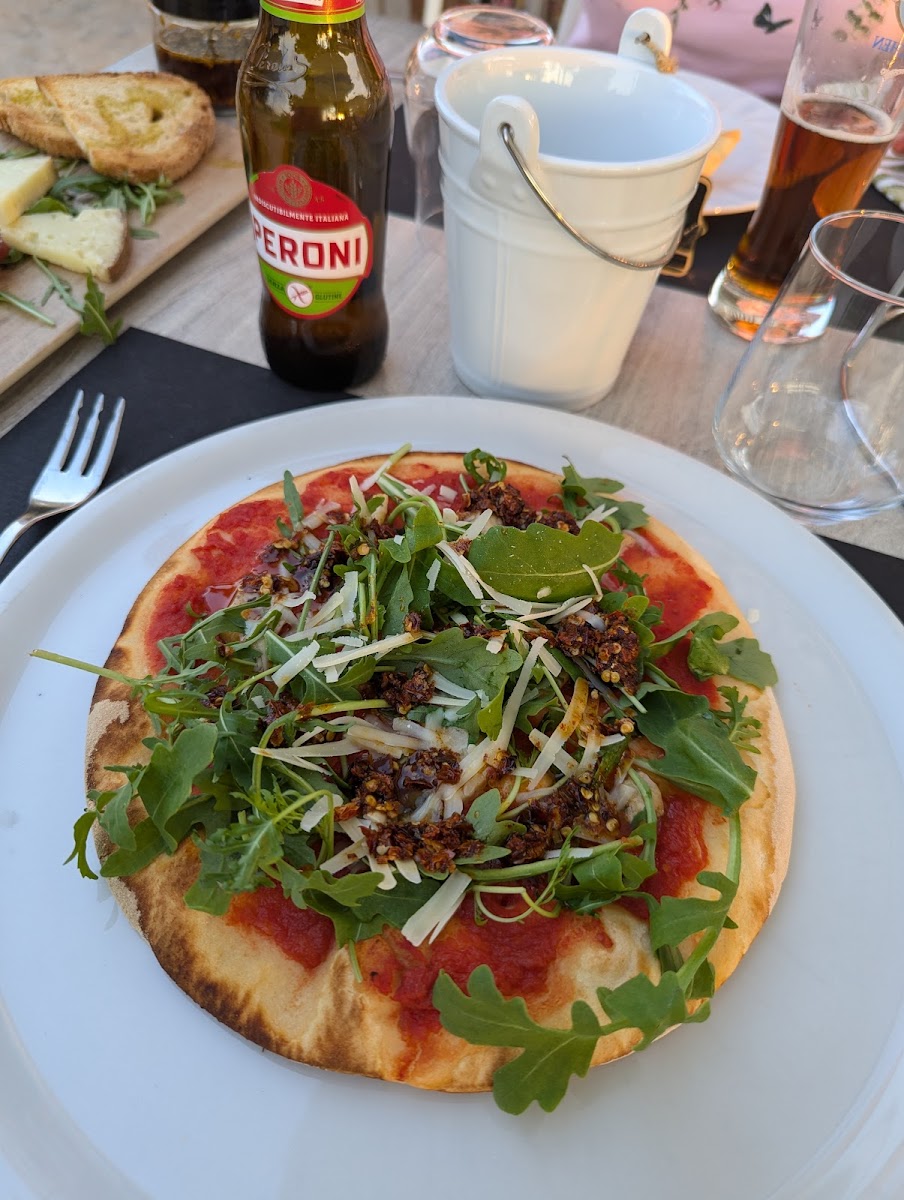 Das Essen war sehr gut, die Pizza leicht, die Zutaten frisch. Es gibt auch Pizza und Bier für Zöliakiebetroffene. Das Personal ist schnell, freundlich und weiß die Kunden gut zu beraten. Das Ambiente ist sehr ruhig, man kann draußen vor einem schönen grünen Garten mit viel Liebe zum Detail speisen. Empfehlenswert.